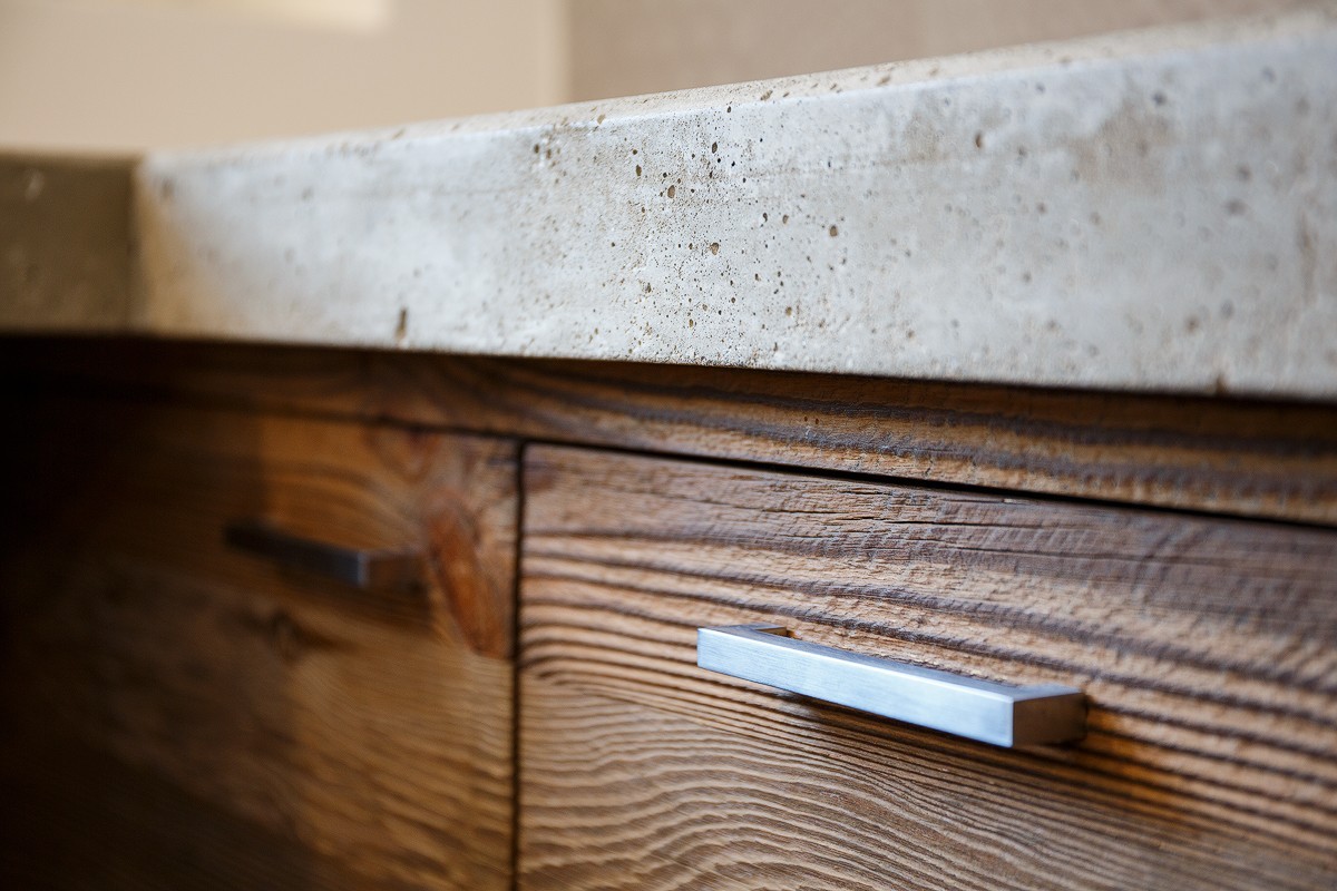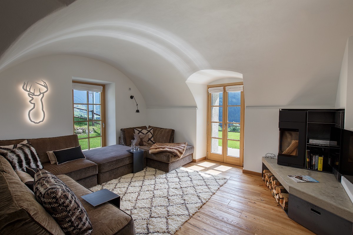 La ristrutturazione utilizza l'abete recuperato e bruciato dal sole.