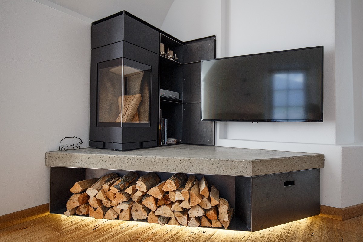 Il rivestimento in abete bruciato dal sole conferisce alle pareti un aspetto unico.