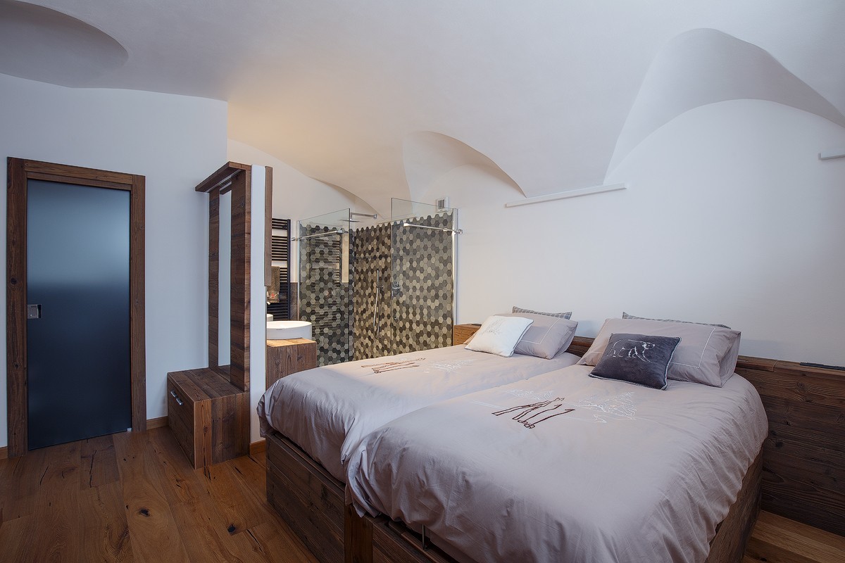 Il risultato sono stanze dal carattere deciso, dove il legno è l'elemento principale che definisce l'estetica e la struttura degli interni.